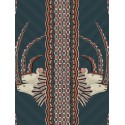 Ardmore'un en iyi tasarımcılarından biri olan Jabu Nene'nin adını taşıyan bu tasarım, heykeltıraş Somandla Ntshanlintshali tarafından yaratılan harika heykelsi gergedan elle sarılmış kaplardan ilham alıyor. Bu kaplar daha sonra Jabu Nene tarafından göz kamaştırıcı renkler ve desenlerle karmaşık bir şekilde boyanıyor ve şimdi Ardmore'un en sevilen imza stillerinin bir parçası haline geliyor. Cole & Son sanatçıları, bu kaplardaki işaretleri kullanarak, süslü boynuzları ve tüylü fırfırlarıyla tamamlanmış bir çift görkemli beyaz gergedanı dışarı çıkaran harika zengin ve canlı bir dikey şerit yarattılar. Bu duvar kağıdı, Zulu sepet örgüsünü anımsatan desenleriyle gerçek bir Afrika ruhu içeriyor ve topraksı zeytinler, tütünler ve kabile lacivert ve turuncusu ile birlikte keskin siyah, beyaz ve gri nötr tonlar dahil olmak üzere beş çarpıcı renkte sunuluyor.
